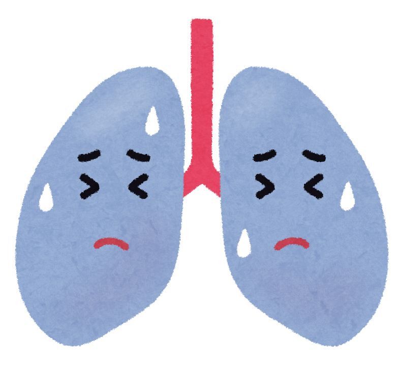 1秒量(息を吐く力):力いっぱい息を吐きだしたときに、最初の1秒間に吐くことができた空気の量です。喘息、COPDなどで低下します。